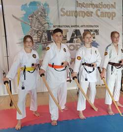 Najświeższą imprezą, w której braliśmy udział był zakończony zaledwie kilka dni temu Letni Międzynarodowy Obóz Sportowy IMAFE, który miał miejsce się w Biskupinie. Oprócz ekipy z Niemiec, którzy są naszymi gośćmi od kilku lat gościliśmy także dużą drużynę z Irlandii. Zajęcia prowadzili David Buckley z Irlandii - Prezydent IMAF Europa, Peter Kluss - Prezydent IMAF Niemcy oraz Petra Gudde i Mikel Brunn (Niemcy). Ciekawe treningi prowadzili również Trenerzy IMAF Polska z trenerami Kadry na czele. Oprócz wielu treningów sportowych z różnych sztuk walki w programie obozu były atrakcje turystyczne, kulturalne i rekreacyjne. Odwiedziliśmy Muzeum Archeologiczne, Muzeum Rybactwa, Muzeum Kolei Wąskotorowej oraz ruiny Zamku Diabła Weneckiego. Korzystaliśmy z basenów zewnętrznych Zajazdu Biskupin, a na zakończenie obozu rozegraliśmy Turniej Sport Kenjutsu i Kata Karate – w Turnieju, co cieszy dominowali zawodnicy Ronda, a swoją wszechstronność potwierdziła zdobywając dwie pierwsze lokaty w Kenjutsu i Kata Karate Tatiana Lajblich. Udział w obozie naszej młodzieży z SSW Rondo Inowrocław był możliwy dzięki wsparciu finansowemu Ministerstwa Sportu RP, w ramach Programu Klub.